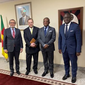 During the visit, the delegation engaged with several high-ranking officials and influential stakeholders across Cameroon’s political and diplomatic landscape. The team met with Prime Minister Dr. Dion Ngouté Joseph, supported by senior advisors, and paid a courtesy visit to the Director of Cabinet of the Prime Minister. The engagements culminated in a strategic meeting with Mr. Samuel Mvondo Ayolo, Director of the Civil Cabinet of the Presidency .